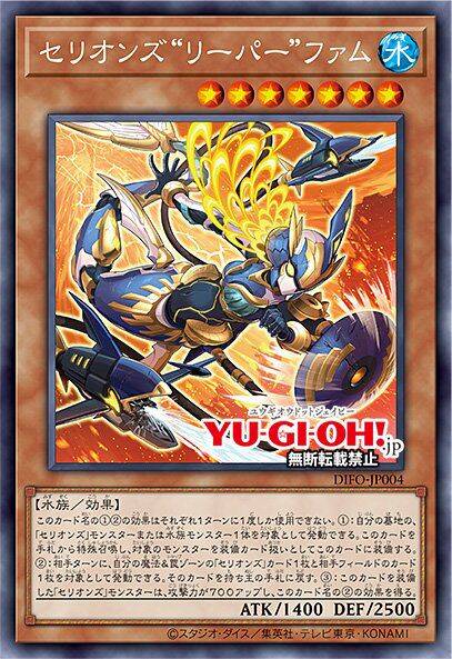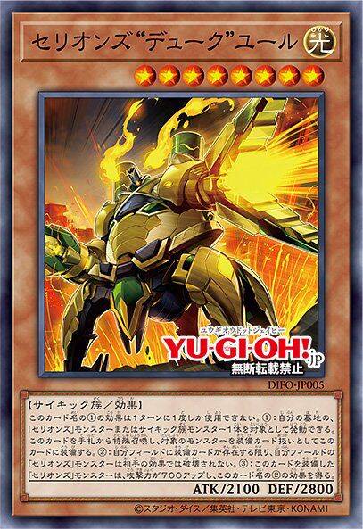 ①:以自己的墓地的1只「塞利昂斯」怪兽作为对象才能发动。那只怪兽特殊召唤。那之后,可以从自己的手牌·墓地选1只「塞利昂斯」怪兽作为装备卡使用给那只怪兽装备。