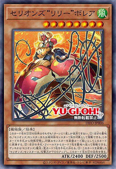 ①:以自己的墓地的1只「塞利昂斯」怪兽或者植物族怪兽作为对象才能发动。这张卡从手牌特殊召唤,作为对象的怪兽作为装备卡使用给这张卡装备。