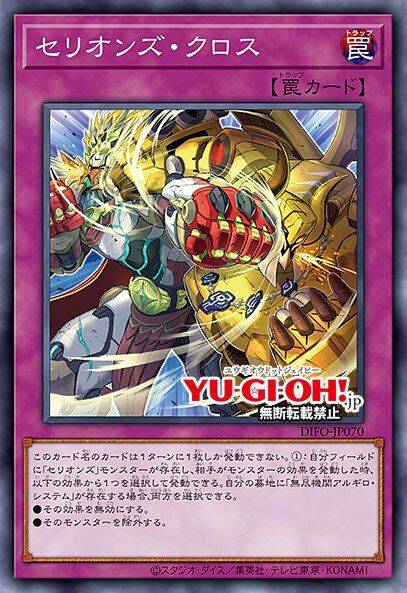 ②:从自己的手牌·场上将1张卡送去墓地才能发动。从卡组将1张「塞利昂斯」魔法·陷阱卡加入手牌。