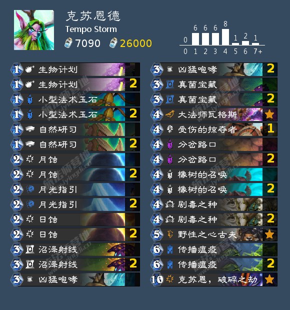 克德是新版本一个令人惊异的新卡组。有了野性之心古夫,这个卡组不再需要超凡之盟来实现组合技。这是非常重要的,因为多数德鲁伊卡组都没有能力多撑一个回合来打出超凡之盟。