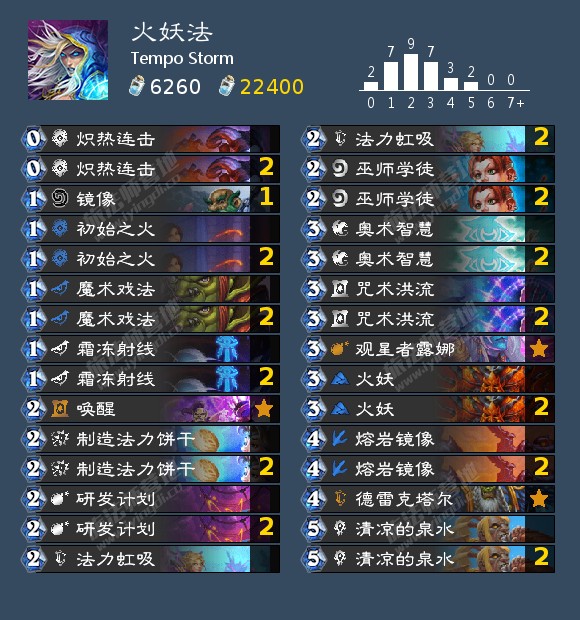 但是,即使是在不利的情况下,火妖法依然有机会获得胜利。2费回合的制造法力饼干,3费回合的咒术洪流和4费回合的德雷克塔尔往往意味着游戏的结束。火妖法在许多对局中都有着取胜的方法,但找到这些方法需要极端的远见和足够的运气。