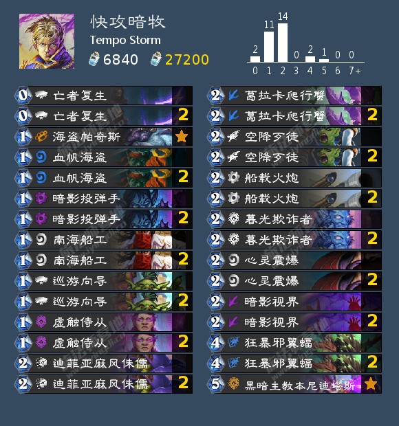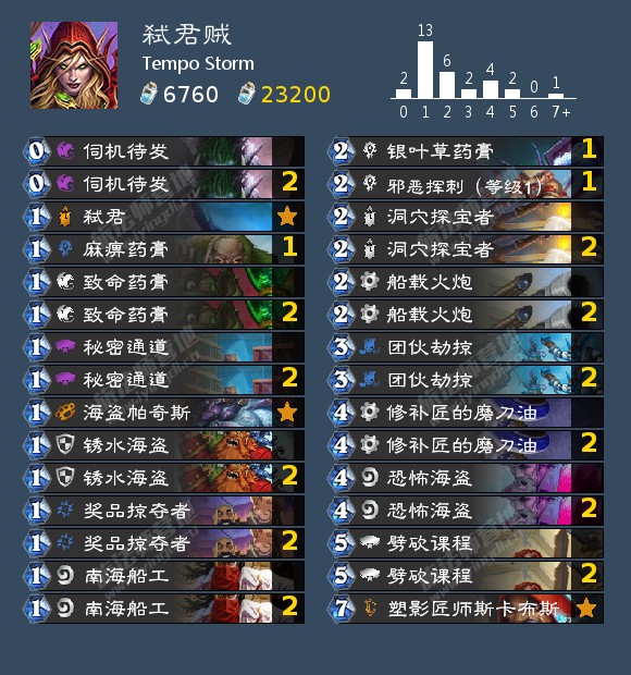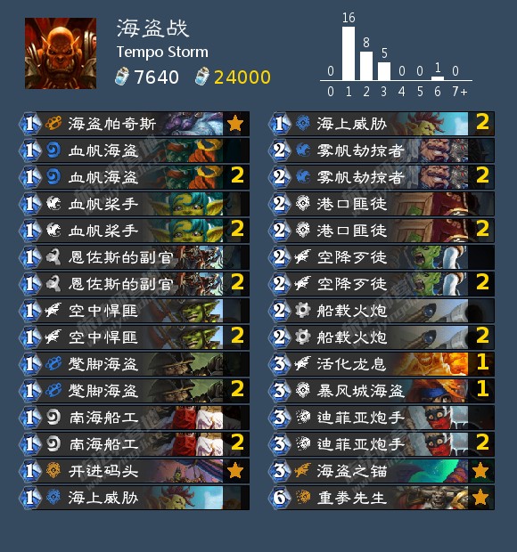 海盗战仍然位于T1。补丁对海盗战而言是一把双刃剑,好消息是雪落守护者被砍到了6费,坏消息是血帆桨手被回调为2/1。当然,她仍然会和我们一起航行。