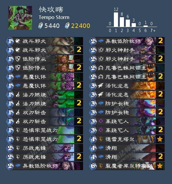 对宝宝园玩家而言,最**的现实是,海盗战在新版本中依然强劲。当古尔丹的小可爱们和加尔鲁什的恶徒们针锋相对时,常见的结果是术士被战士全面压制。点燃法的再度崛起对宝宝园而言也是一个坏消息,因为吉安娜越来越精炼的Combo配合上冰箱让宝宝园迅速击溃法师的难度高了不少(不过从胜率表上来看,点燃法仍是宝宝园最优势的对局之一)。