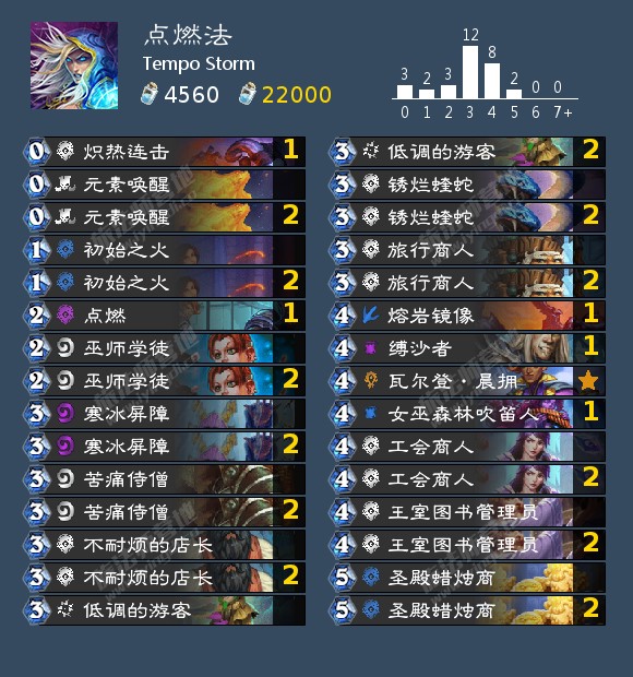 在下面的构筑中,30张卡牌中的28张都被多数玩家所接受,而两张苦痛侍僧则是存疑卡位。魔导师晨拥的法力值消耗从8点降低到了7点,这使得部分玩家开始考虑加入它,因为它能够提供第三个寒冰屏障,同时不会受洛欧塞布影响。当然,这要求玩家至少从手牌中打出一张寒冰屏障,但晨拥提供的一个额外回合很可能会让这变得值得。我们提供的卡组并不包含晨拥,不过我们也十分好奇晨拥在点燃法中的表现究竟如何。