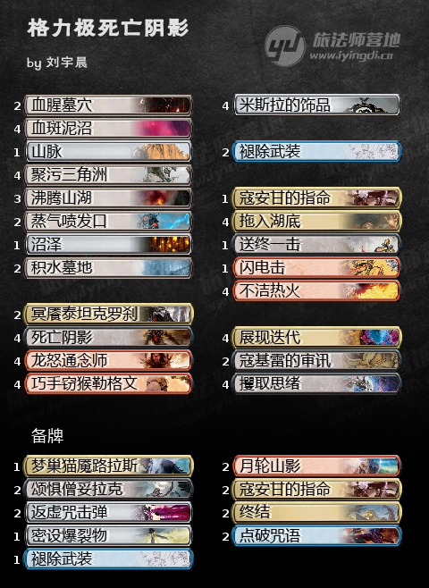 这次我选择的套牌是格力极死亡阴影。这里需要先略微声明一下,截止打完整场比赛,我对于死亡阴影的套牌之熟悉程度应该最多只有70%,而对于整个摩登环境的熟悉程度最多也只有60%,而打之前这两个数字甚至可能是50%和40%。所以如果文章中出现了什么不恰当的观点,也还得提前请大家谅解。