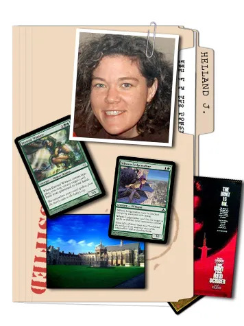 我曾在赛场见过Hélène Bergeot,一位表情十分笃定自信的女士,是当时万智牌所有比赛的总负责人。Jenna Helland,这位女士在万智牌设计团队做了14年设计师。