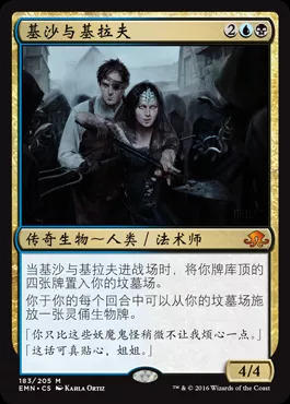 最倒霉、孱弱的人类群体在天使的守护下,数量顶多和群魔打一个对开,居然诞生出基沙与基拉夫这对奇葩。从一出场,这对连形象都没有的姐弟就不停在背景描述(就是卡牌最底端那行楷体的小字)中争吵“怎样利用灵俑更好”。