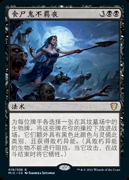 收到2021年万智牌圣诞纪念闪的那天,我恰好在读《阁楼上的疯女人》。牌中画着一袭黑裙的基沙,手持劈山斧,将灵俑的胳膊砍砍下,打上粉色缎带,送给她的弟弟基拉夫,欢庆这个属于黑色法术力的节日。我脑子里突然冒出一个句子:荒野里的疯女人。