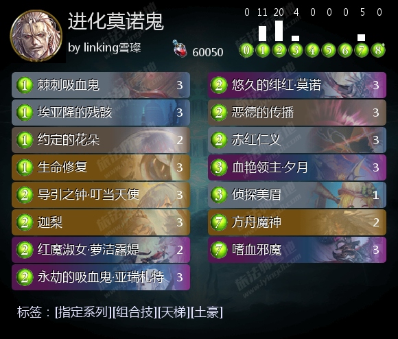 血艳领主·夕月同样能从刷进化中获益,在中期过牌寻找组合技组件,并在斩杀回合过墙。手动进化夕月还与莫诺有很好的配合,相当于3费打8,效率很高。