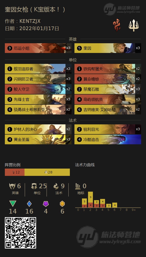 大家好,我是KENTZJX!你们的K宝!相信大家已经看到了各种版本的奎因女枪,有点眼花缭乱了。那作为国内一名热爱lor的忠实玩家和lor视频创作者,我也想交出一份我的答卷,并附上我的解析,让大家不是单纯的抄作业,而是能学到一些游戏理解。然后希望大家能支持一下我的B站账号呀,会时不时发一些我觉得好玩或者好看的对局。