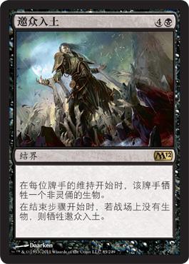 邀众入土不选择目标,它只是想让你在异能结算时牺牲一个非灵俑生物。如果你在结算时有一个非灵俑的生物,你就必须牺牲它。它在堆叠上时你耍云移这类花活也不是很有用。