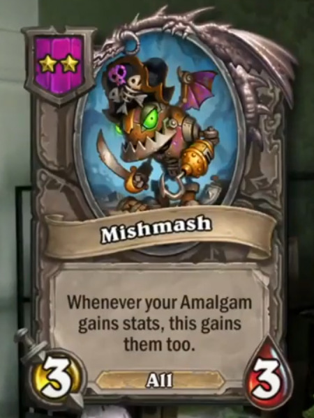 - 普通伙伴:2星3/3“全部”,每当你的融合怪获得属性值,该随从也会获得。