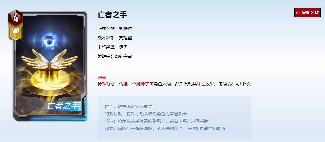 友好邻居很使用的看脸系技能,白嫖迈尔斯蜘蛛侠荷兰弟不是梦,但是会吃掉我们一个卡的站位。慎用。