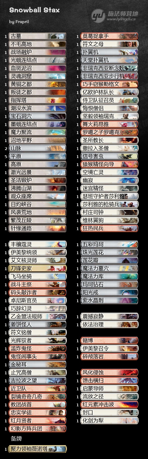 虽说是一个风暴类主将,但只要回手够多拇指哥的抗锁能力十分惊人(因为异能是复制咒语而非释放复制品)。其构筑的核心在于如何提升拇指哥的异能稳定性和收益。而在2020年末CMR刚发售之际拇指哥并没有那么多组件给他去使用;那时候虽然配合千面客逆岛 的双指挥官能够组成双拇指,但是依旧面对着逆岛结算拇指被杀或者回手等一系列干扰依旧很容易陷入僵局。而稳定拇指效应的组件除了它自己的拇指之外几乎也都要仰仗逆岛结算成功变成拇指个之后才能奏效,如幻象身影 ,非瑞克西亚蜕变妖 ;甚至那时候构筑还需要去使用冒名客逆岛 、火花双身这样的费用过高的单卡。但是在2021年初收获叙事神开始至摩登新篇2,拇指哥不可思议地收获了大量能保证其稳定性的关键单卡:STX的二次之声薇兰、以荣休大法师 和暴风窑艺家 为首的诸多魔呓生物,MH2的酒馆恶棍 、泛音逸才 。这些生物的加入**降低了拇指哥对于逆岛的依赖性,也很好地缓解了逆岛出场拇指被杀这一问题。