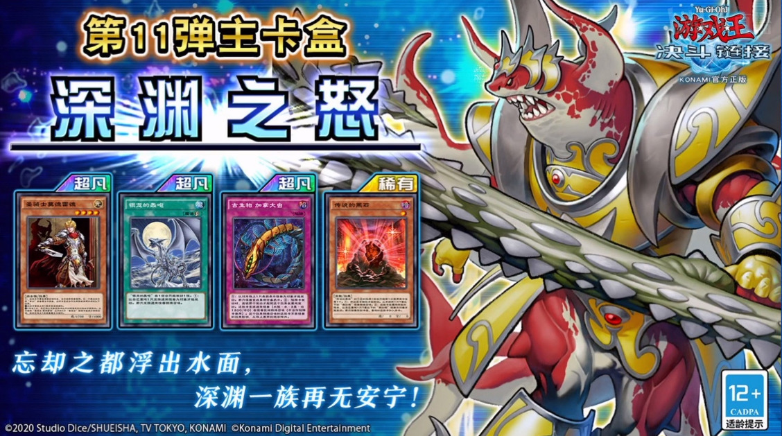最后,第11弹主卡盒---深渊之怒,会带来水精鳞、圣骑士和真红眼等系列的新卡。同时还有强力陷阱---伯吉斯吸虫·加拿大虫。