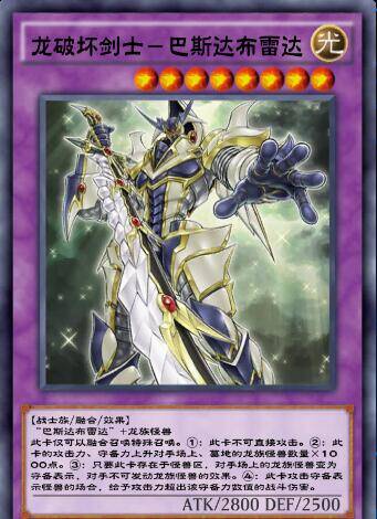 然后就是龙破坏剑士这个本家融合大哥,对于对方场上的龙族怪兽有着转防,不能发动怪兽效果的绝对压制,同时还能根据对方龙族数量提升攻击力,战斗也是造成贯穿伤害。唯一缺点就是不能直接攻击,但这也足够了。找准时机一波带走对面吧。