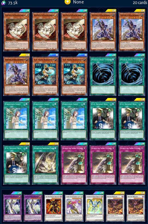 这套组法先攻三大怪很美但过于依靠起手,老是高星起手的话建议可以放弃UA轴走多风技能带光抽低抽的稳健打法。不出意外的话新周年活动会有钻石半价老包特惠,缺卡的朋友可以到时候再补全。总之,这套卡组还是比较考验卡组羁绊的,但糊起来也很爽,造价也不算贵,感兴趣的朋友可以收集+1了。理论教学就到这里。