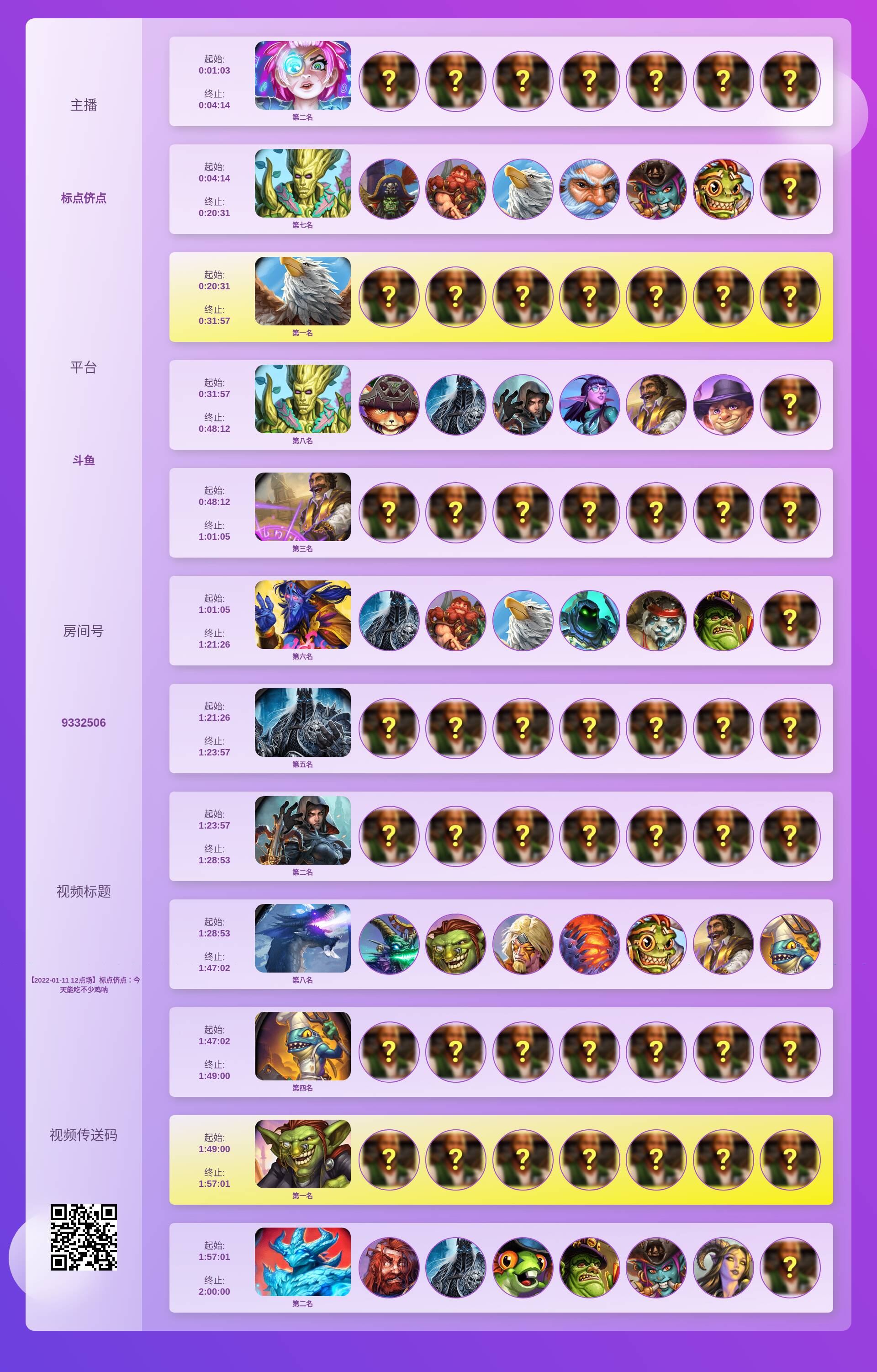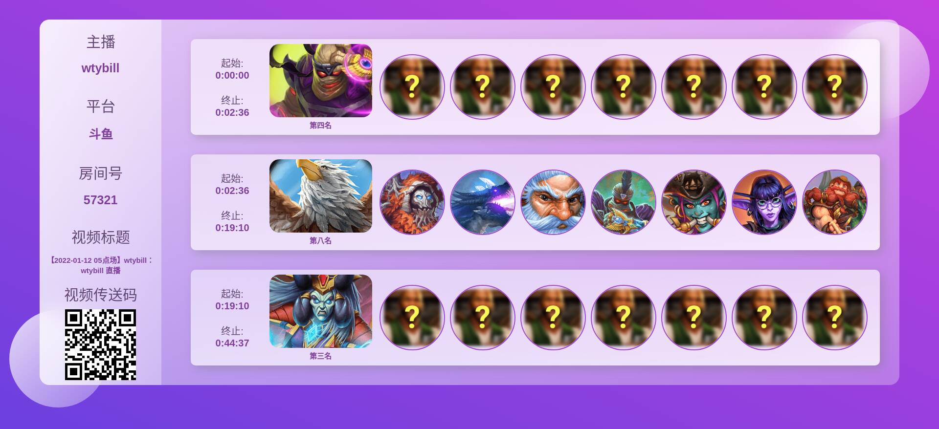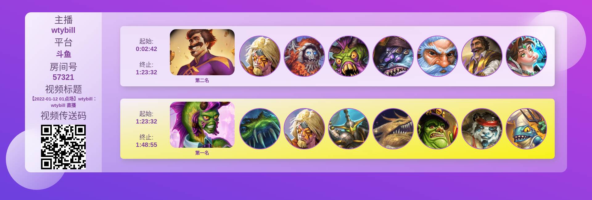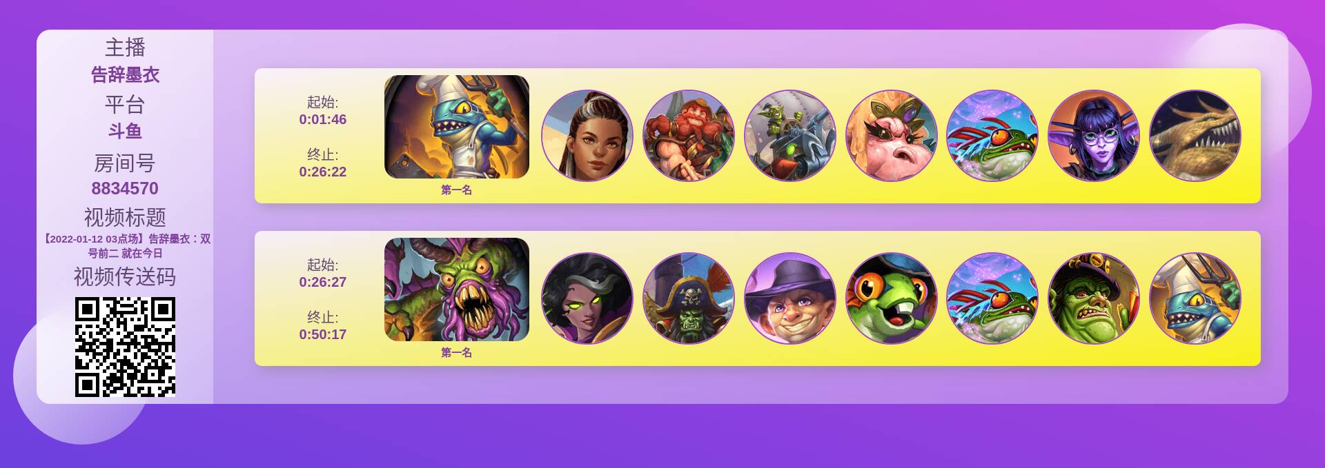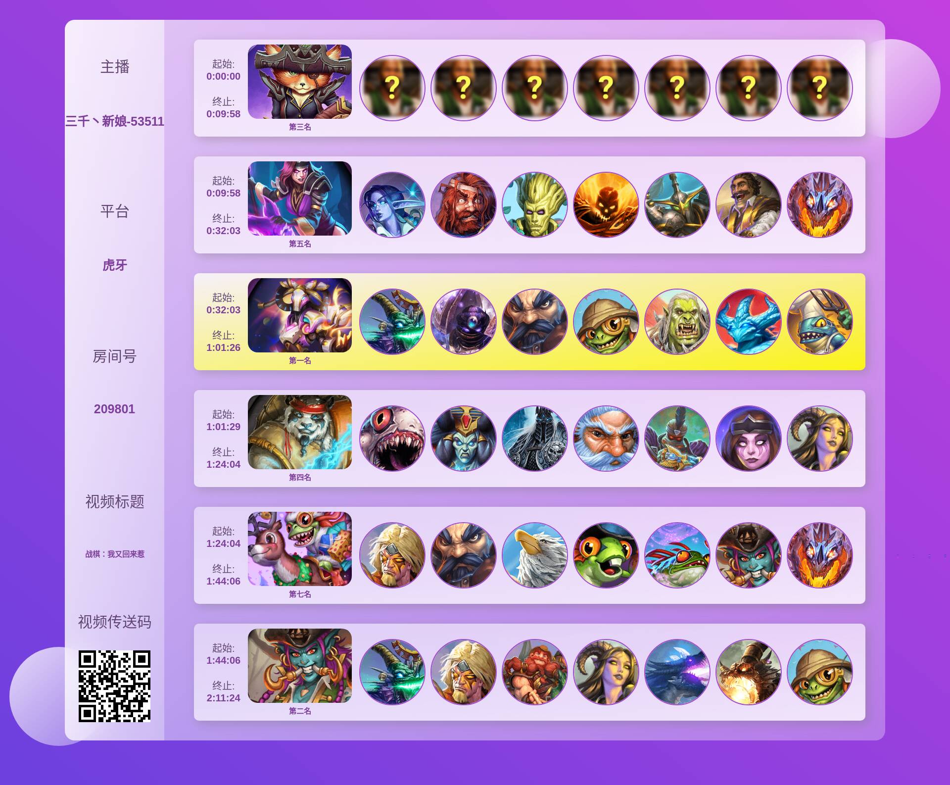 不完全统计炉石战棋直播录像战况,主播顺序完全随机。