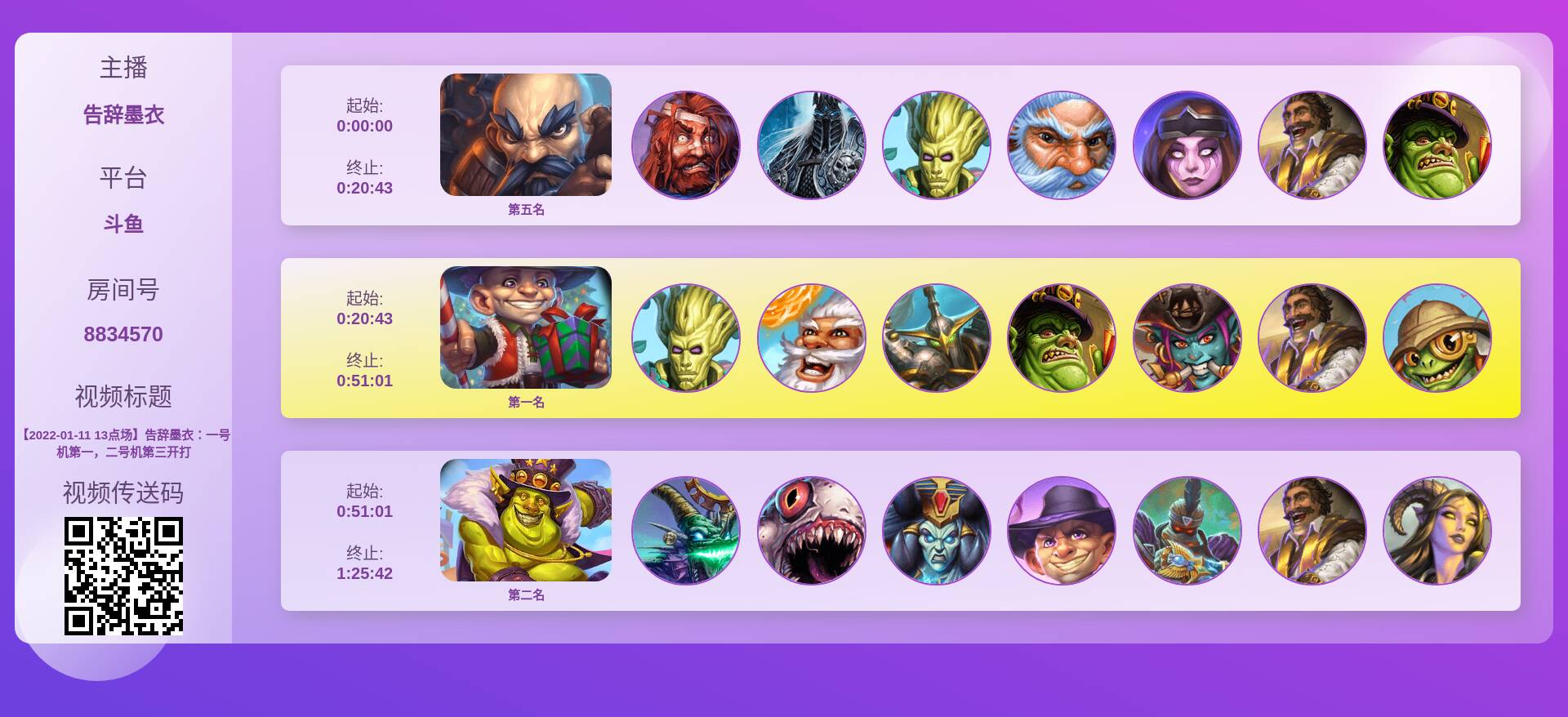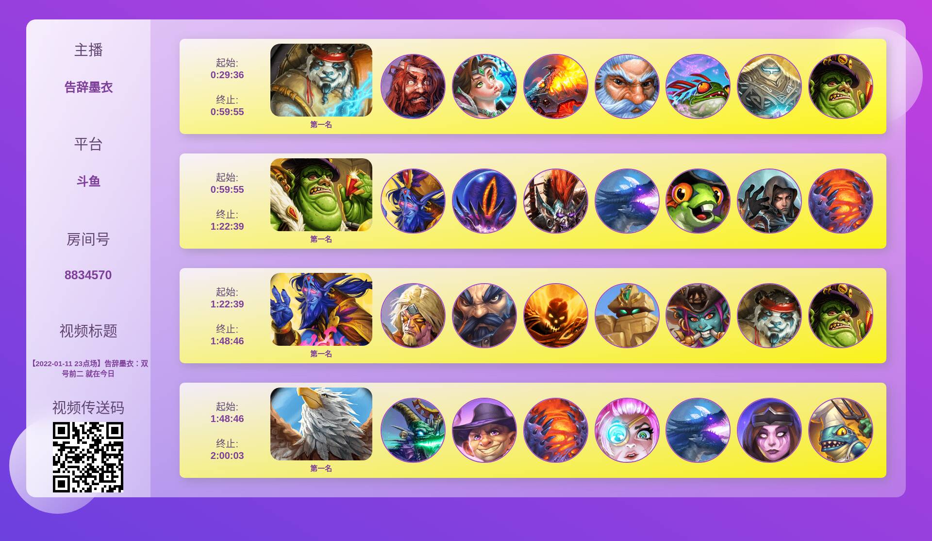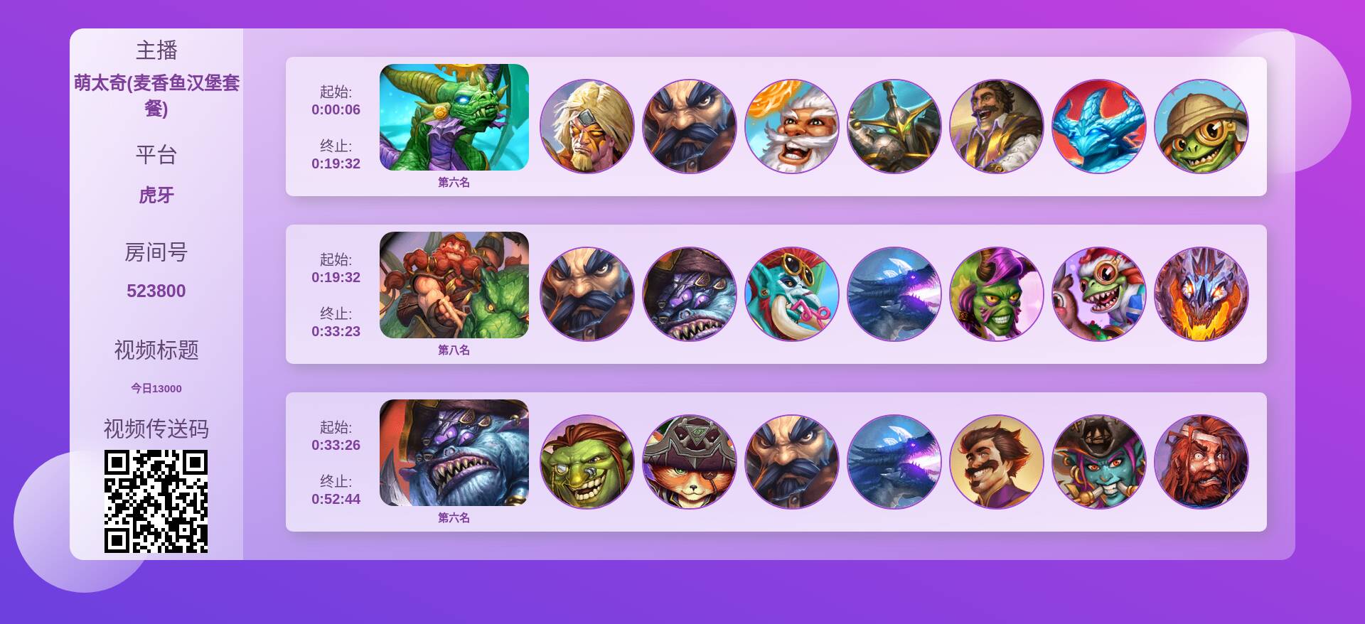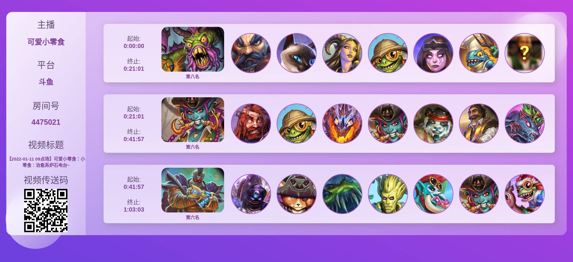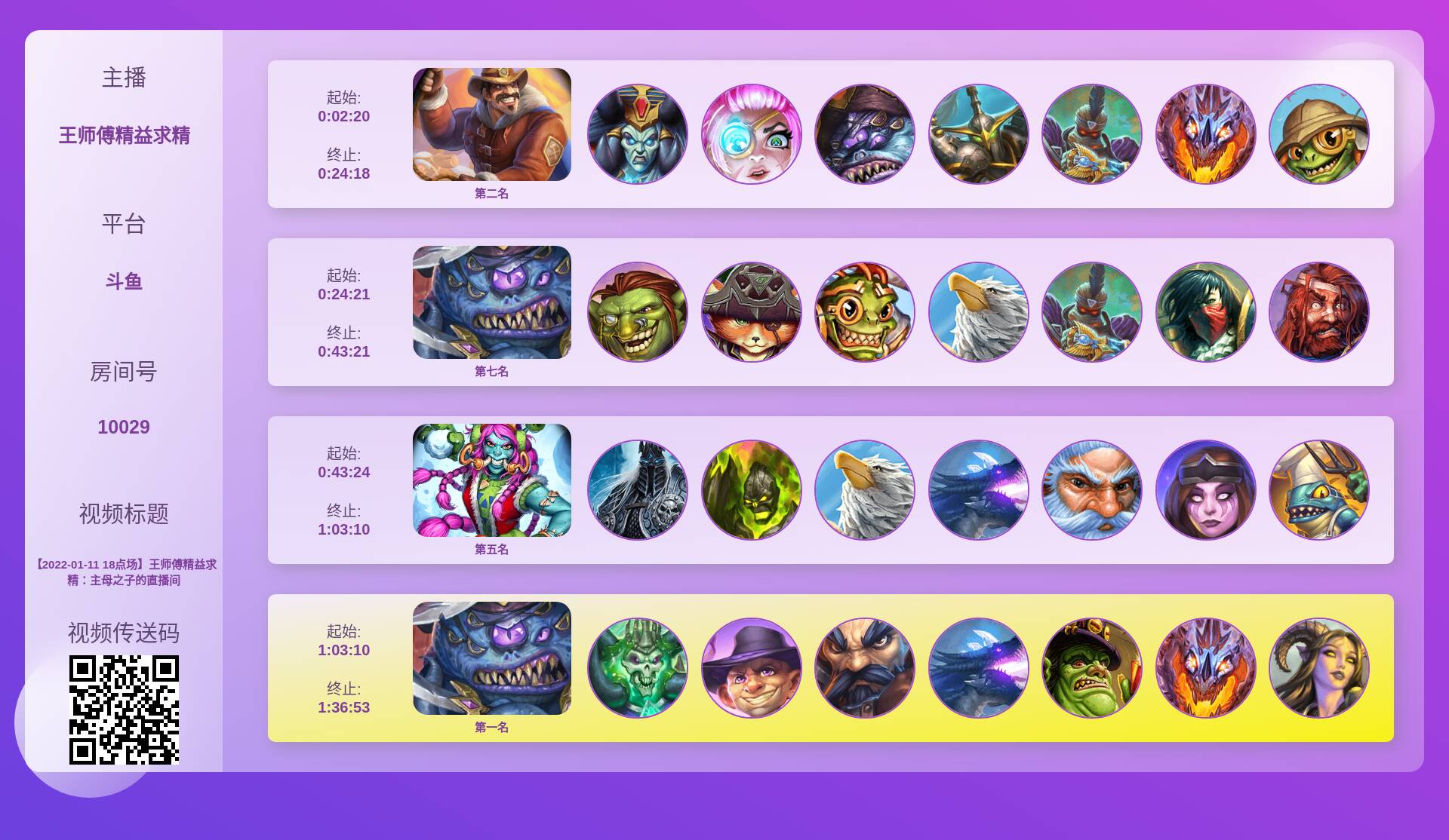 不完全统计炉石战棋直播录像战况,主播顺序完全随机。
