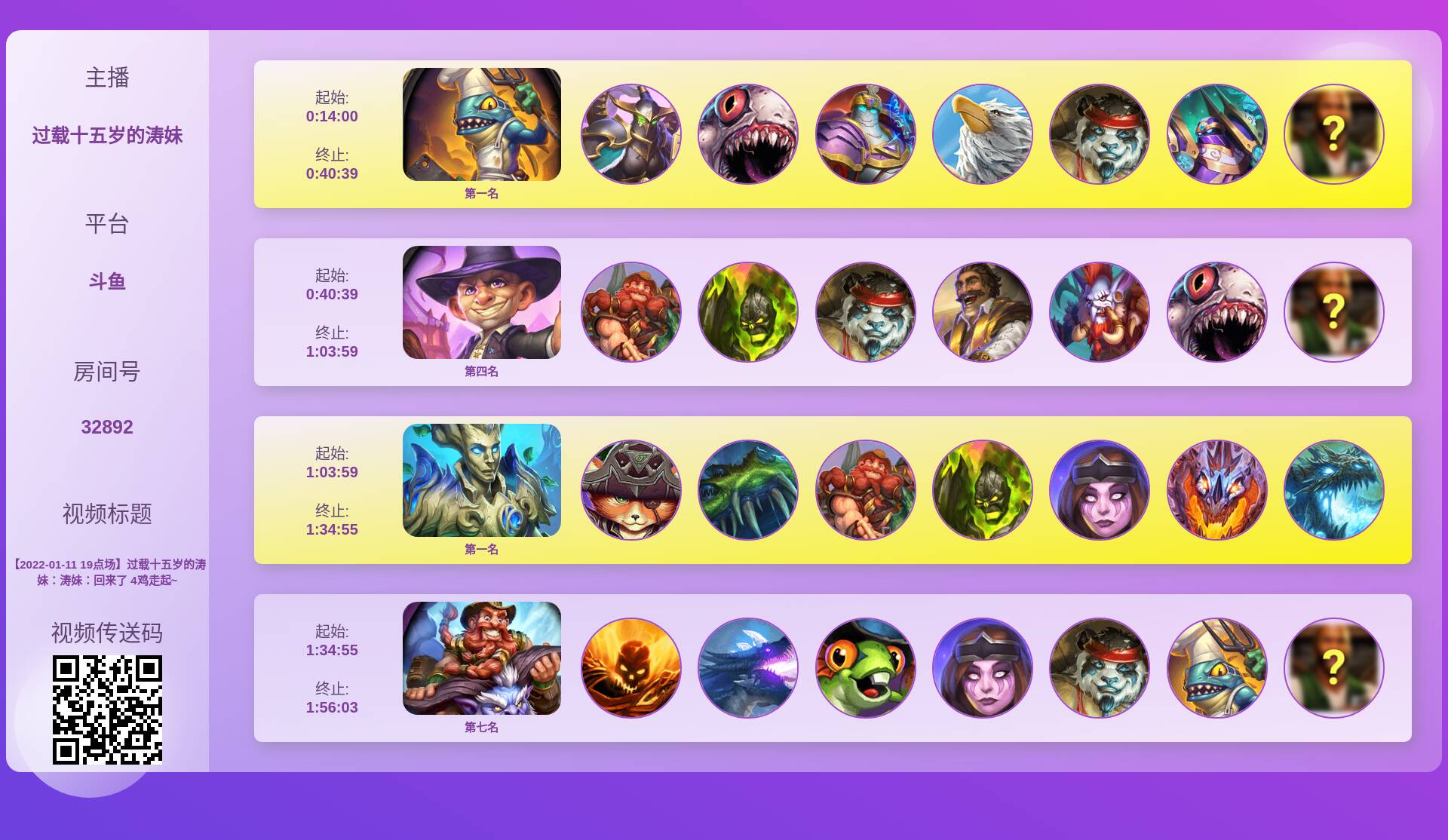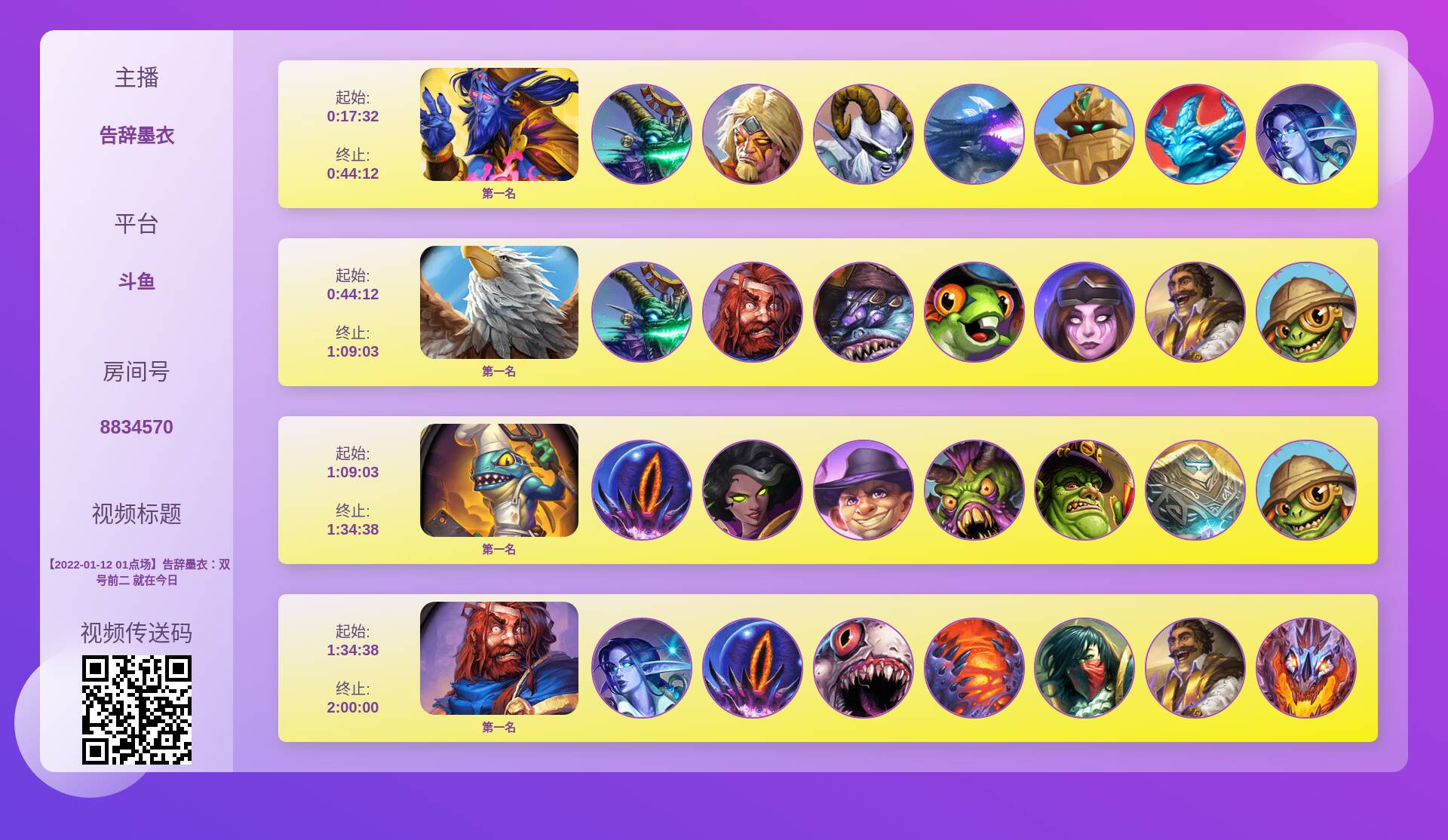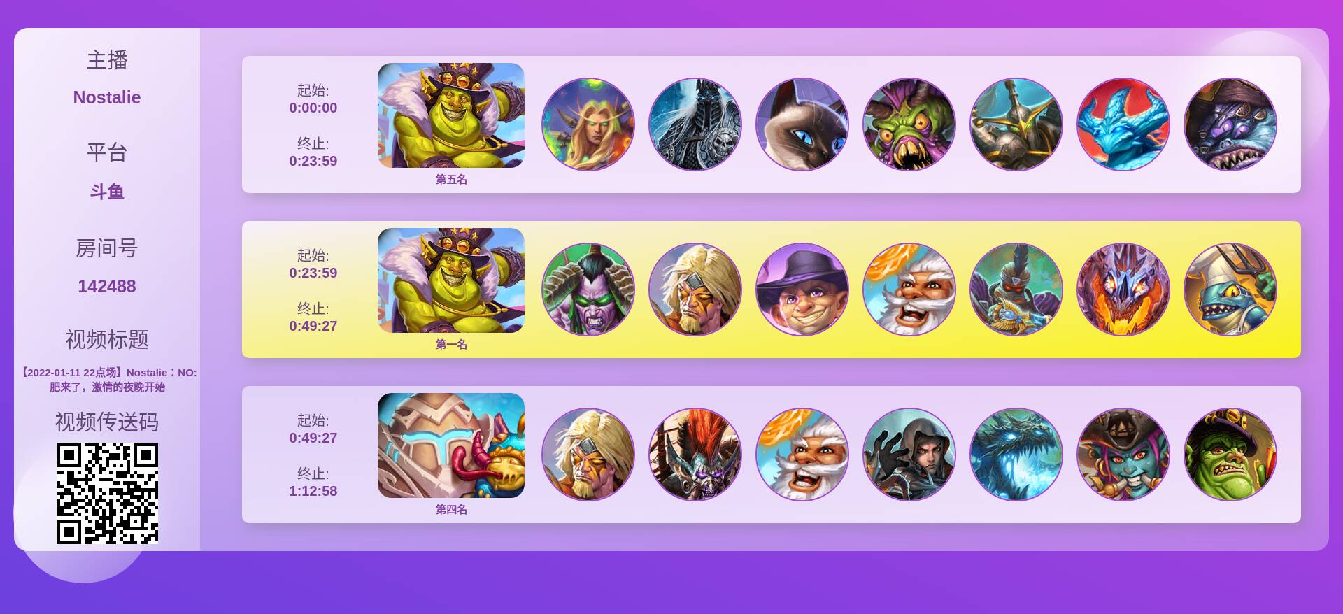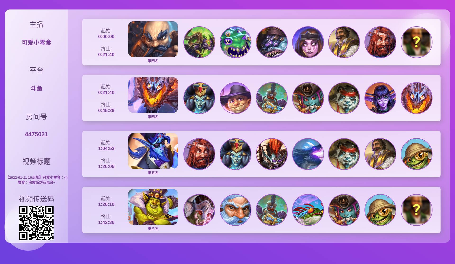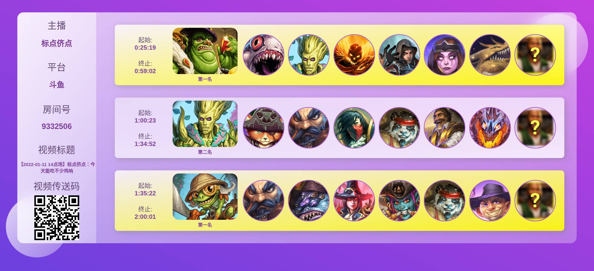 不完全统计炉石战棋直播录像战况,主播顺序完全随机。