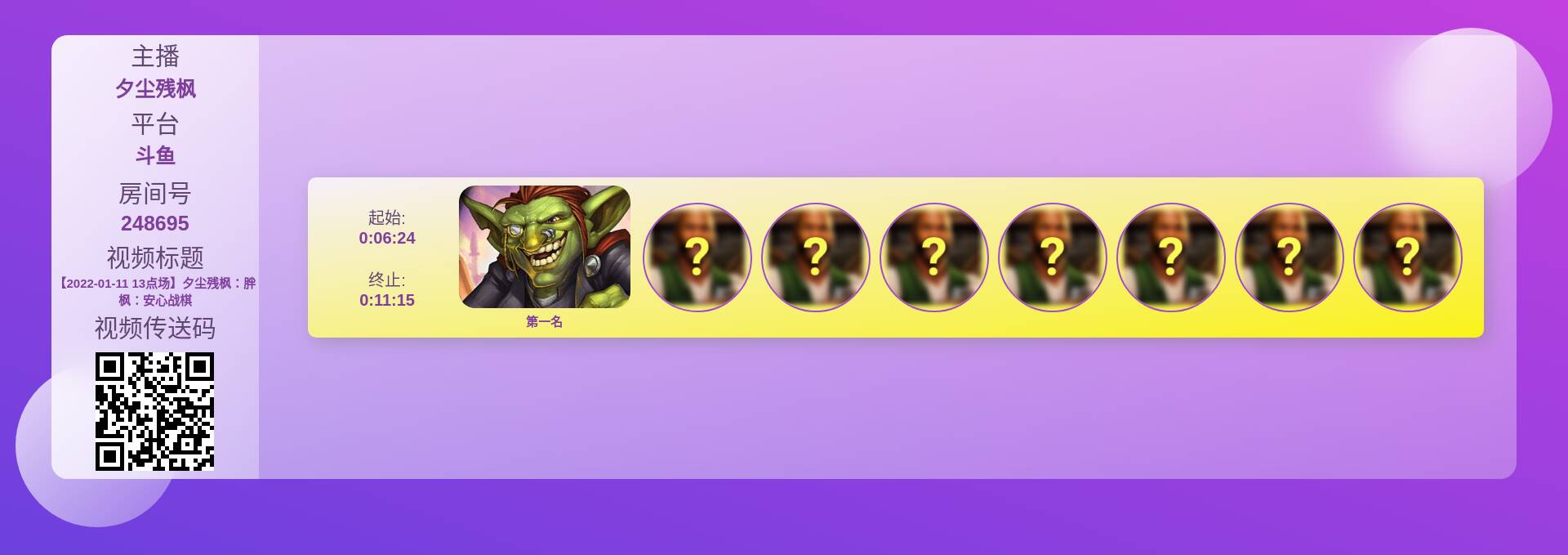 视频标题: 【2022-01-11 09点场】夕尘残枫:胖枫:安心战棋(录播视频传送门)