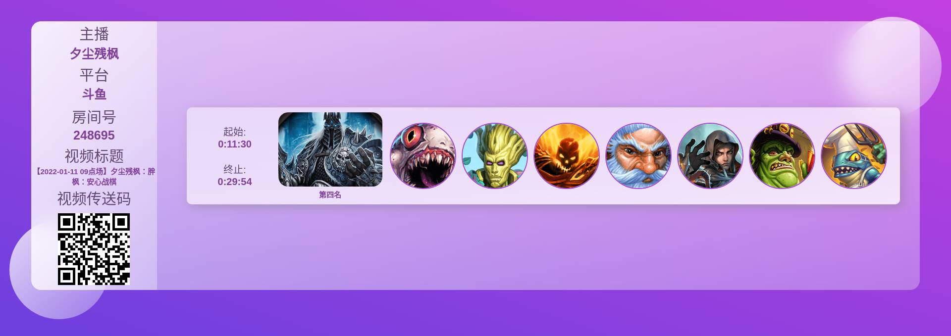 视频标题: 【2022-01-11 07点场】夕尘残枫:胖枫:安心战棋(录播视频传送门)