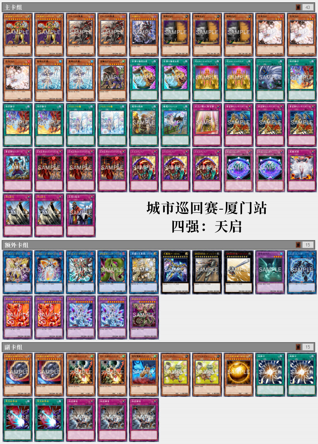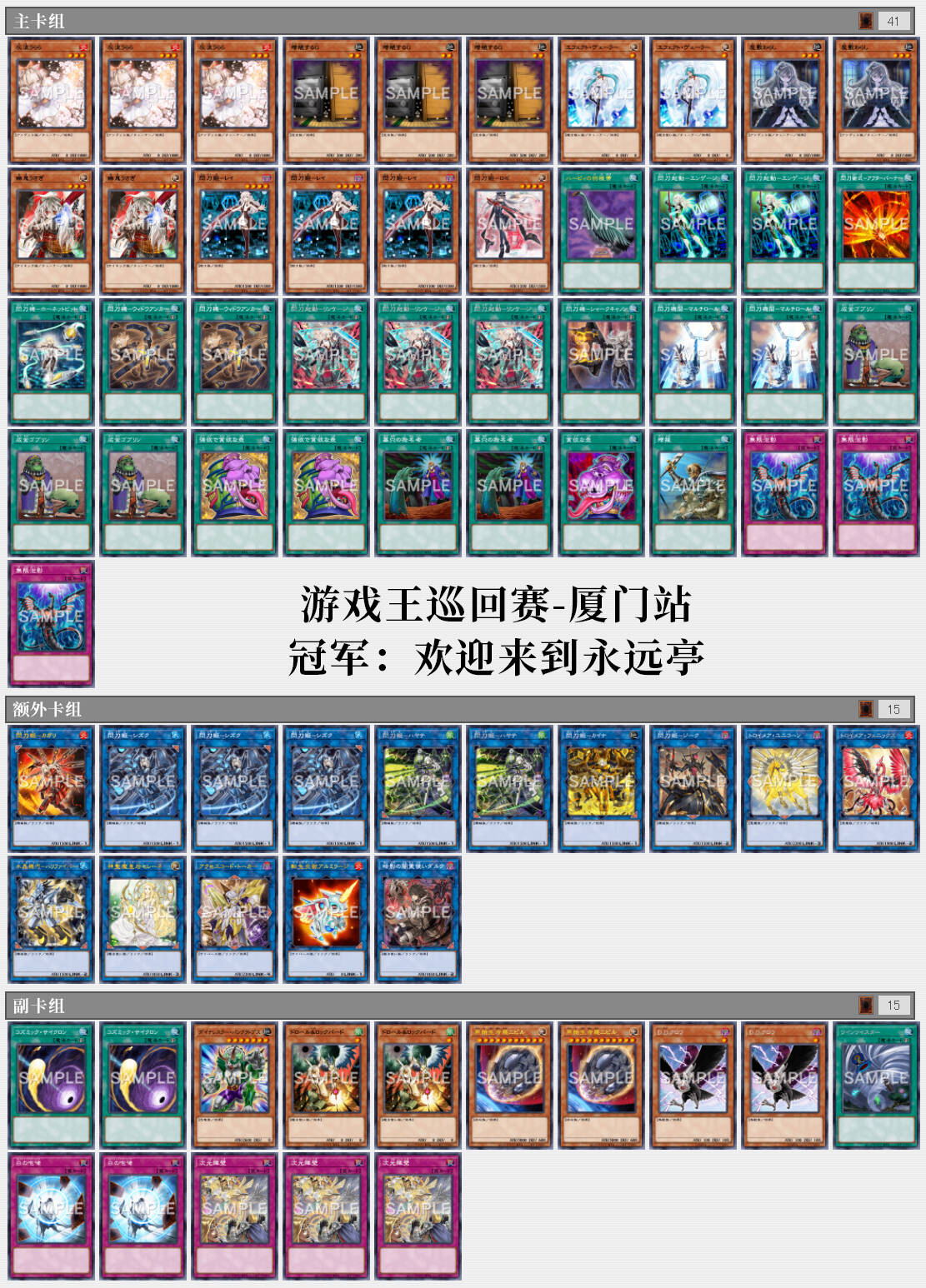 本次巡回赛实到294人,根据微博@游戏王卡片游戏 的微博内容,本次巡回赛的参赛卡组分布如下: