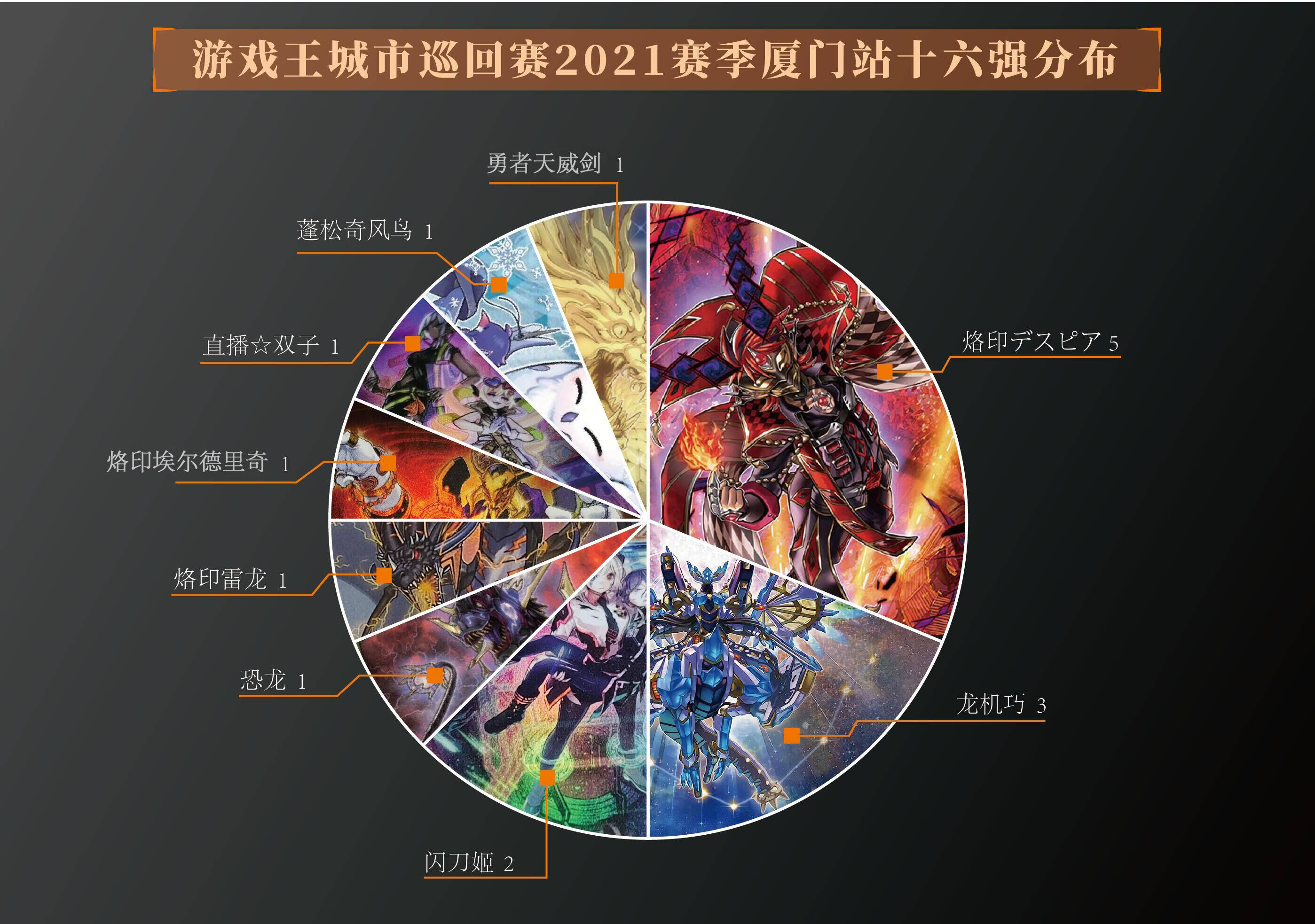 烙印デスピア 5;龙机巧 3;闪刀姬 2;恐龙 1;烙印雷龙 1;埃尔德里奇 1;直播☆双子 1;蓬松奇风鸟 1;勇者幻龙 1
