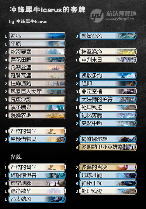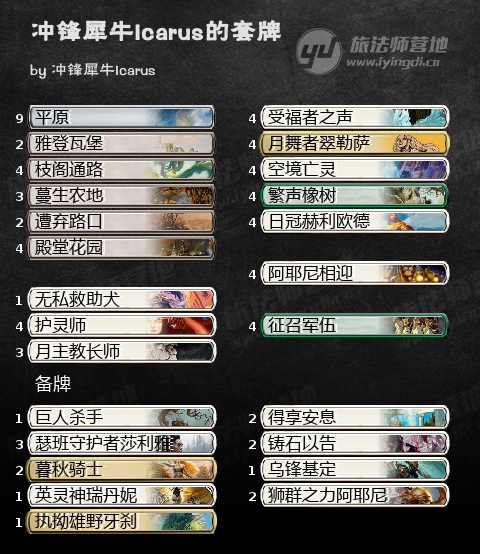 接下来一套登顶套牌的设计者是法国玩家Galopin。他曾分享了两套利用莲花田野的套牌,一套白蓝一套洁斯凯。他的洁斯凯田野也玩到了第14名的好成绩,不过我们还是决定只分享这套白蓝的版本,因为内核差不多。