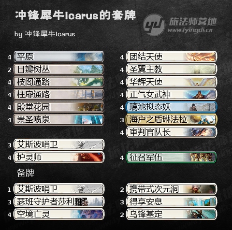 第二套牌仍然来自AlthMTG,不过与第一套有很大不同。班特天使在史迹中经常出现,不过Alth成功将它带到了天梯第二名的位置。这套牌被依尼翠:炼金的团结天使小小的加强了一点,不过主要还是仰仗审判官队长。