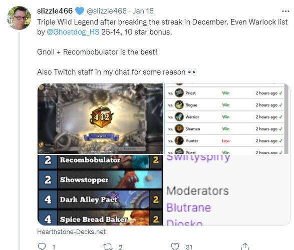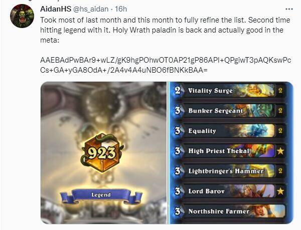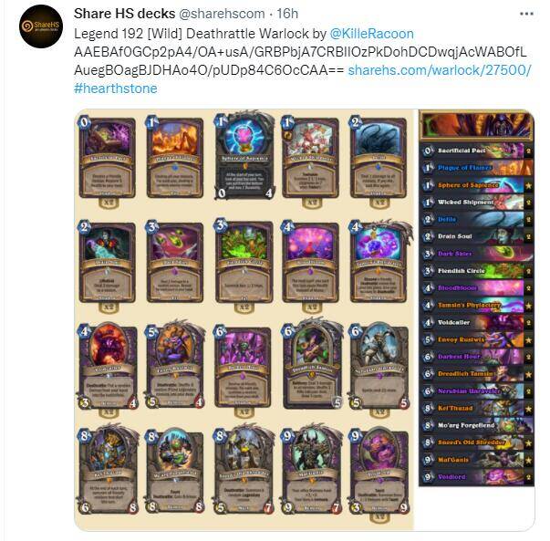 狂野卡组搬运均来自外服选手的推特,由于外服与国服环境略有差异,搬运的狂野卡组构筑仅供大家参考。