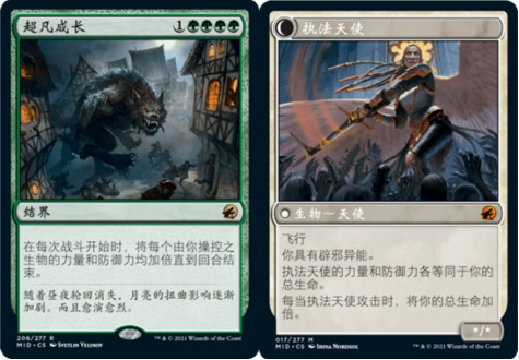 •一张是超凡成长,进入战阶翻倍生物攻防;另一张是永续天使的背面执法天使,攻击时翻倍总生命