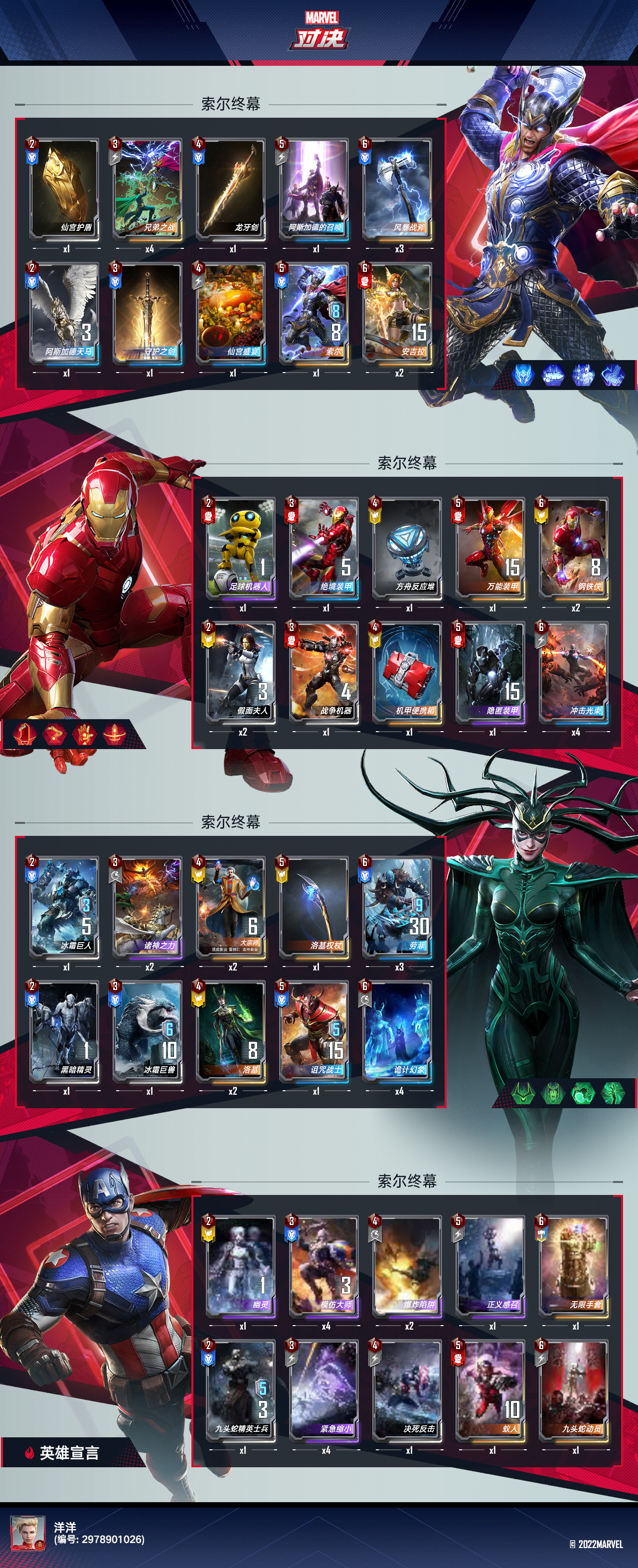 索尔和海拉这两个英雄是必须的。而第三个英雄选择钢铁侠主要有两方面的考虑:一是加强一下前期的强度保证血量;二是后期钢铁侠和冲击光束可以应付一些终幕本身难以应对的阵容(振奋)。