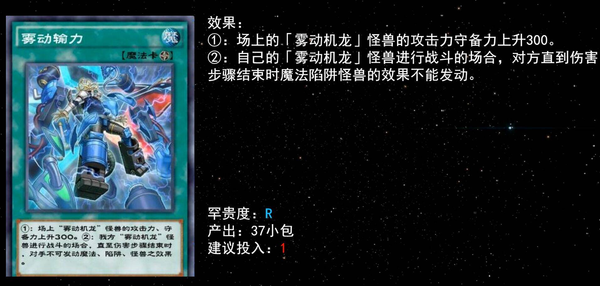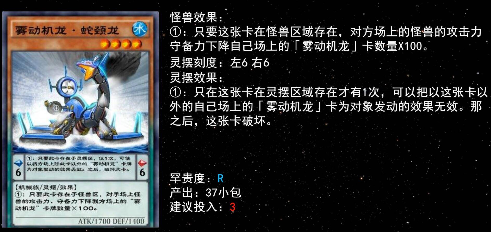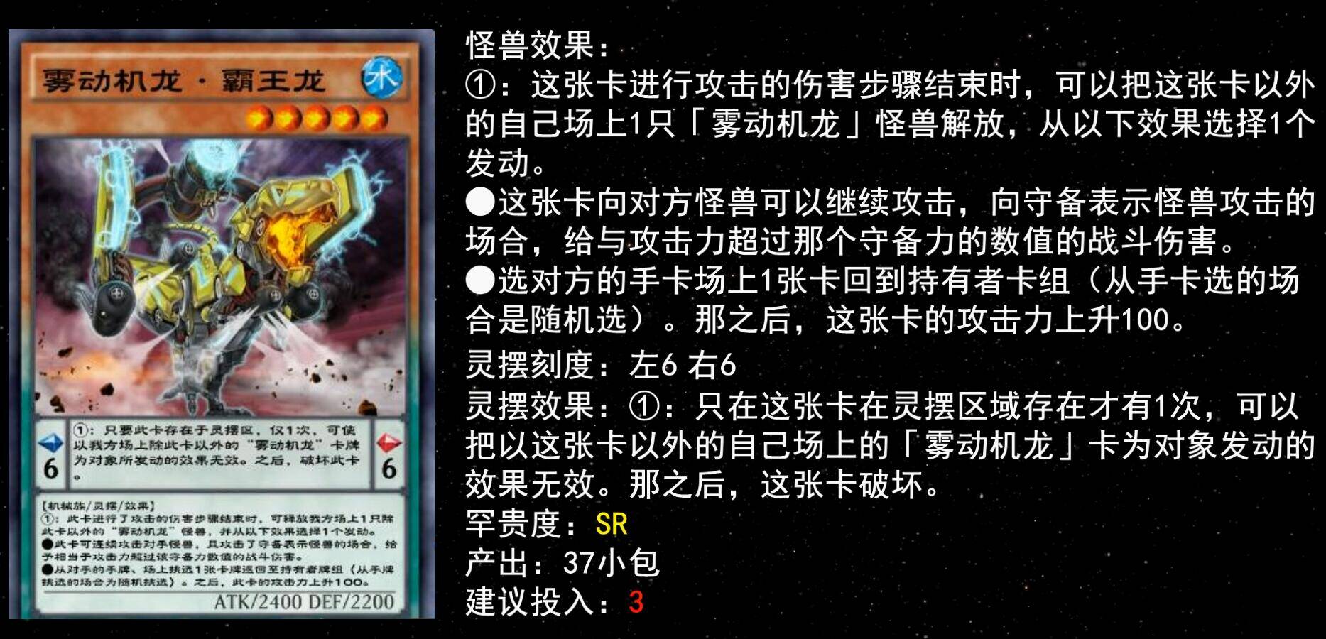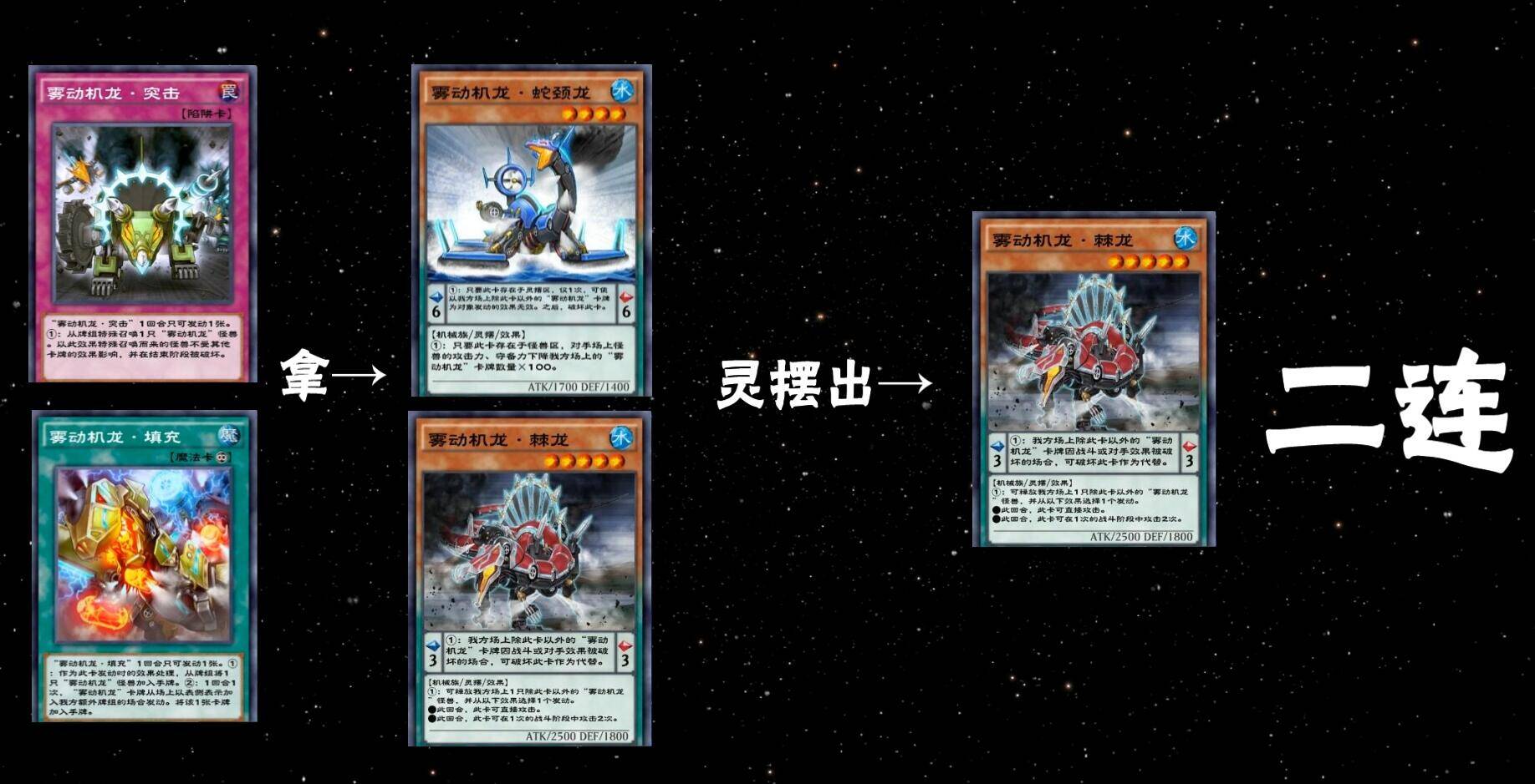 同样的还有5星三角龙,自己场上怪兽仅有雾动机龙时可手牌特召,补充输出很实用,建议至少下1。