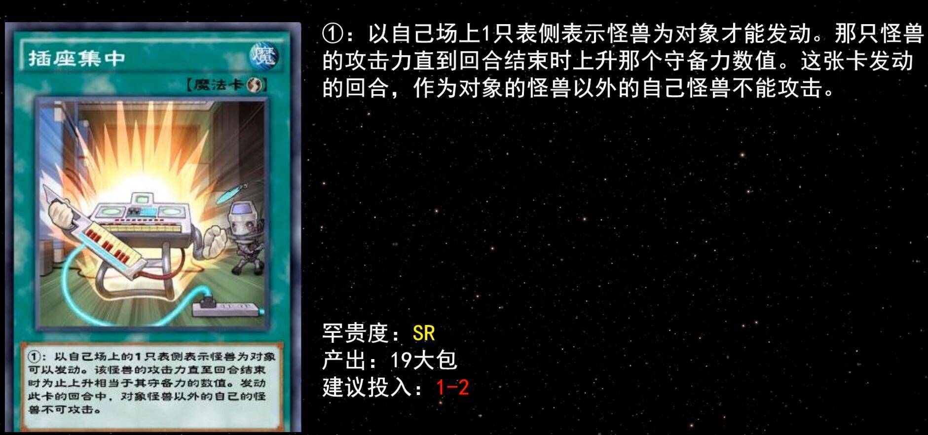 卡组中另外的SR卡填充,作为本家永续魔法,卡组精准检索,每回合一次的本家怪回收,你会发现你越打手牌越多,子弹上膛就意味着对手离末日不远了。