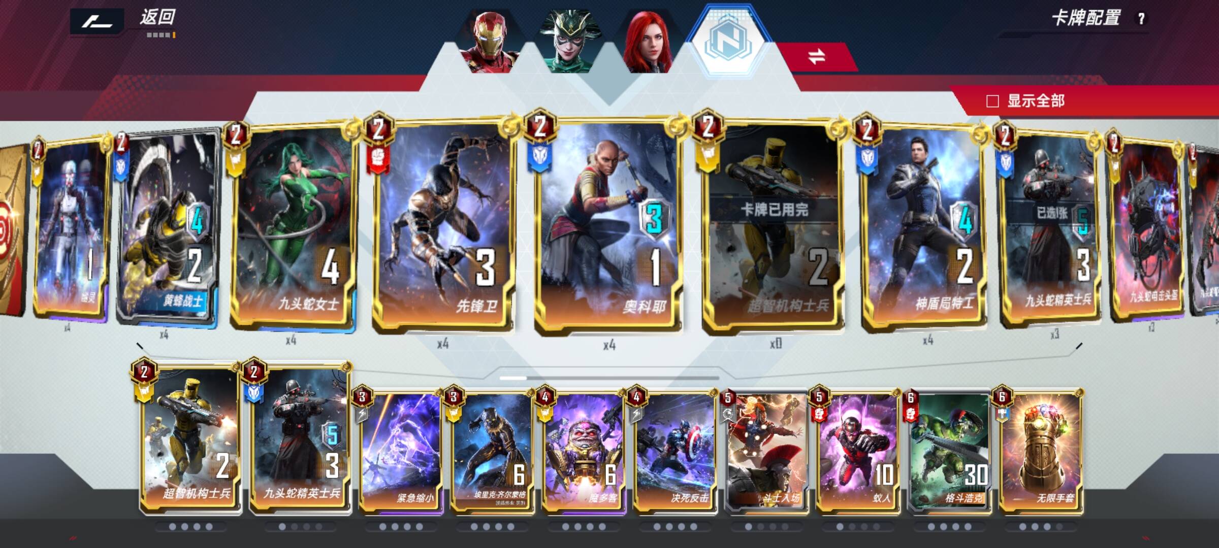 昨天营地杯打决赛,我自己没有报名,抽空看了看,本以为是振奋大战万能刺的局面,没想到居然***一个比较意外的卡组。看了一下构筑,是三轴卡组(不是三核),格斗浩克,海拉终幕,钢铁侠终幕。由衷地敬佩每一个敢于尝试的玩家,比如昨晚的桑克瑞德选手,作为决赛唯一的大师段位玩家,自然有可圈可点之处。我连夜研究,仔细地优化(个人认为)了一下这套构筑。
