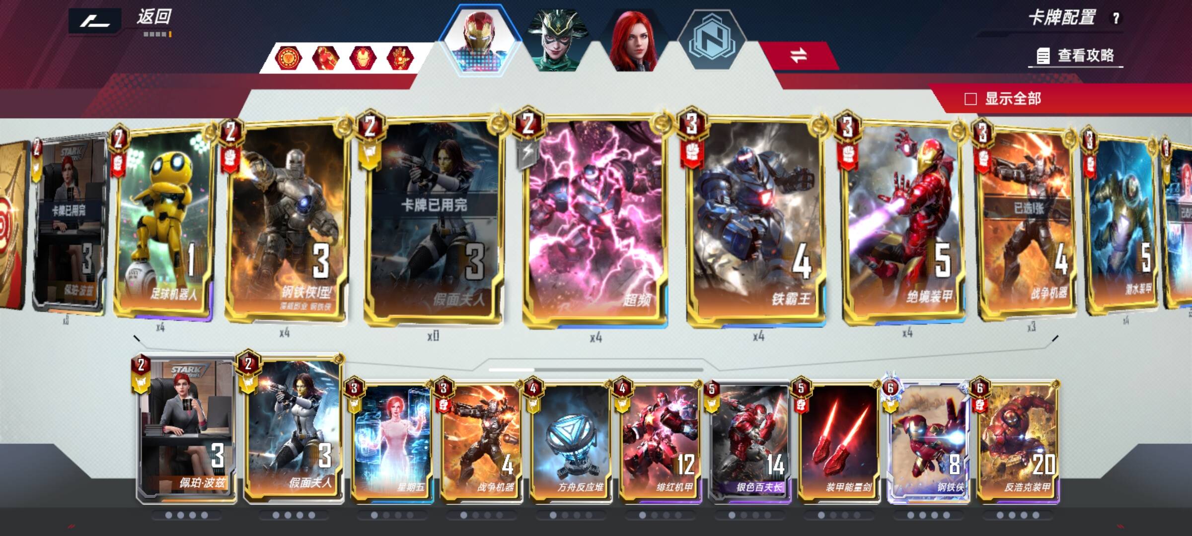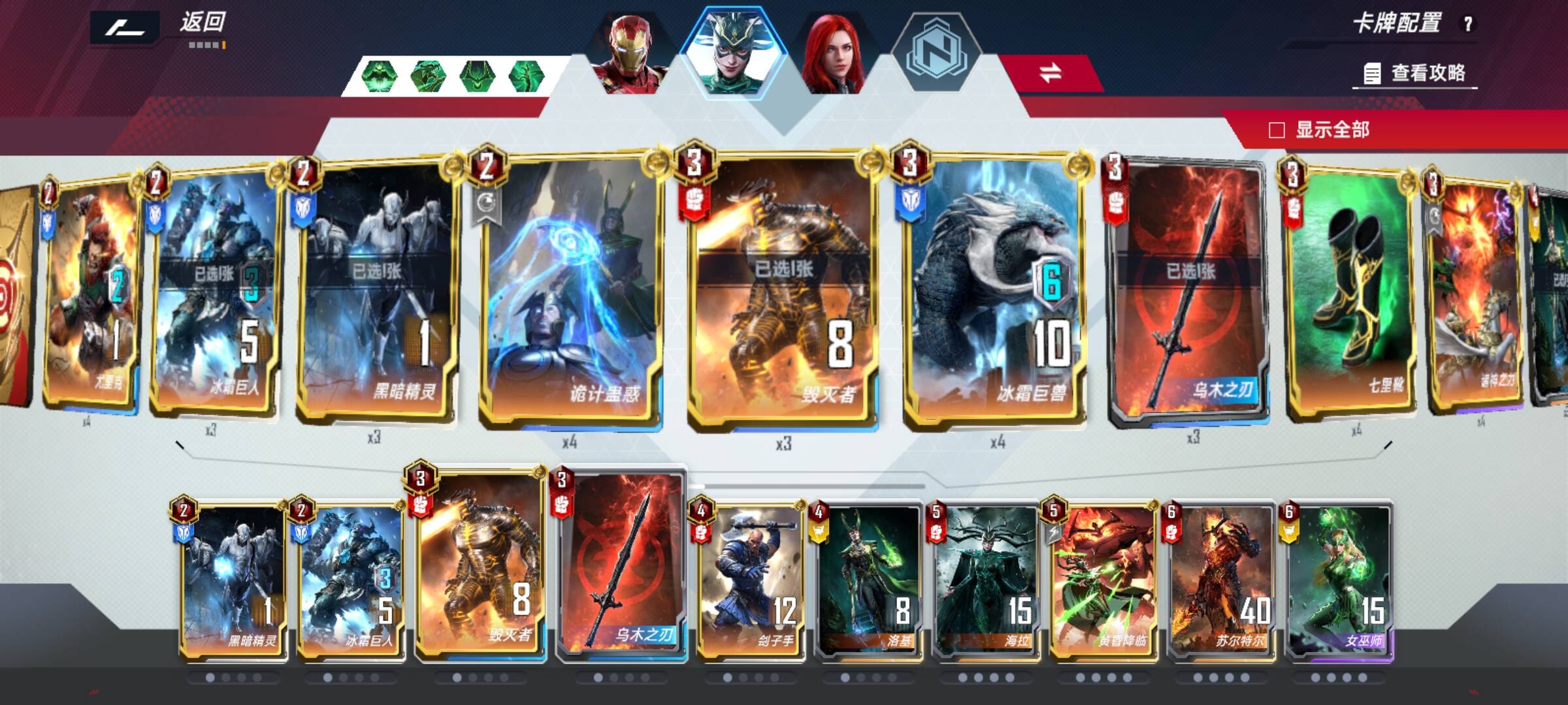我虽然只看了他的两把,但是猜测出他原本应该是根本不同的技能来抉择卡组走向。如拿到海拉两个新四败就走海拉终幕,拿到亡魂搜寻等就走格斗浩克,配合钢铁侠终幕养鞭狂(仅举例)。