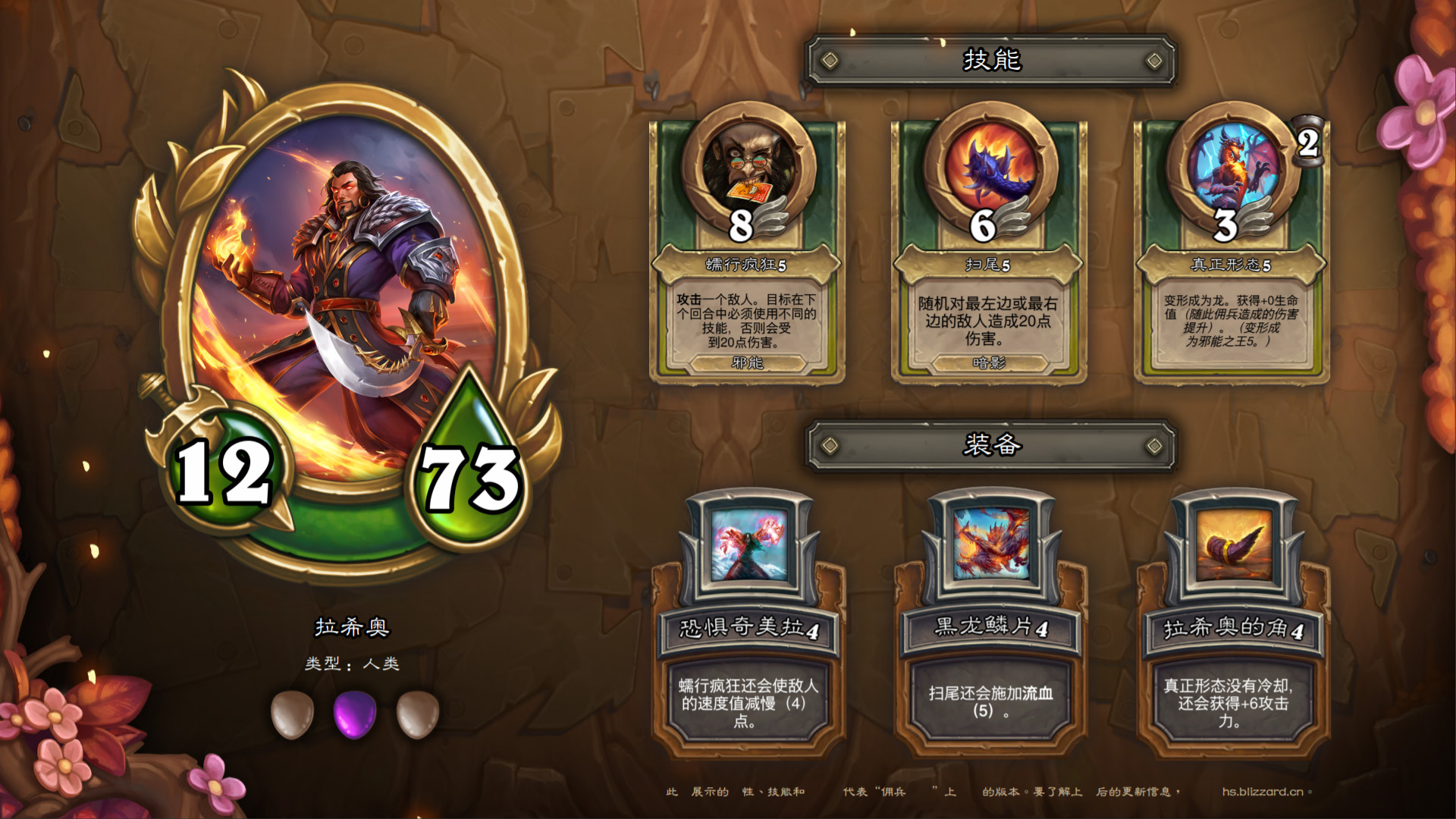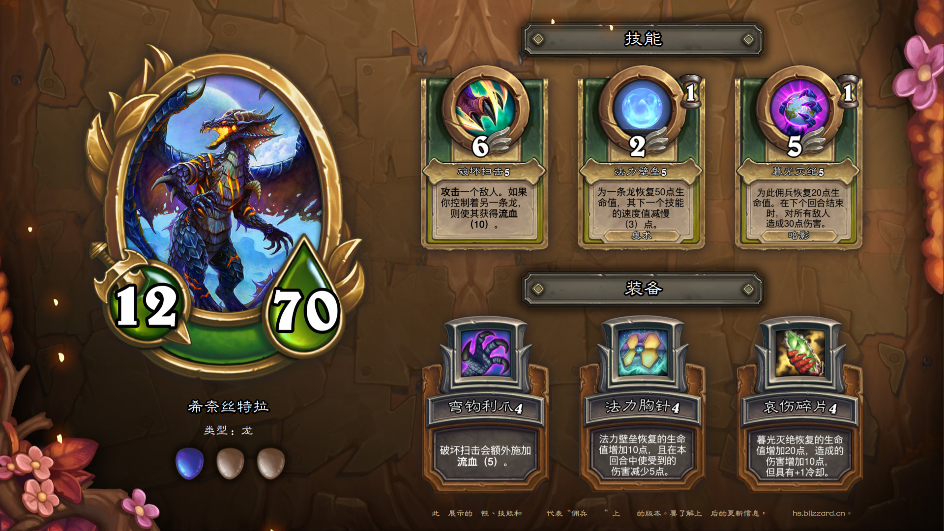 - 真正形态5:(速度值3点,冷却2)变形成为龙。获得+0生命值。(随此佣兵造成的伤害提升)。(变形成为邪能之王5)。