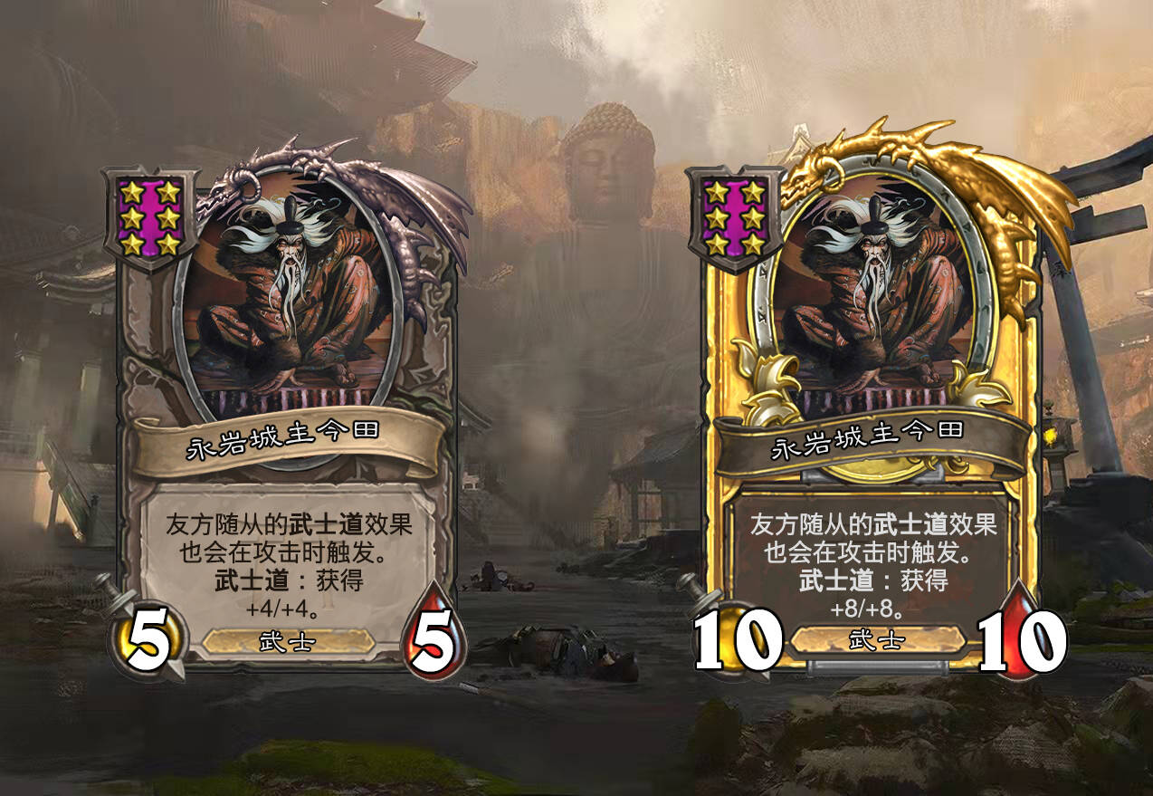 伴随着神河新开发的时空通道在多美代的介绍下得以在艾泽拉斯的酒馆投入使用,来自千年前神明之战的武士现在在鲍勃的酒馆中整装待发,在鲍勃(和漏斗蛋糕)的指引下,现在的他们所崇尚的信念只有在为你夺得这八人死斗的胜利时才能得以满足。在鲍勃的酒馆中招募一批强大的武士,让你的对手折服在他们强大的意志力下吧!