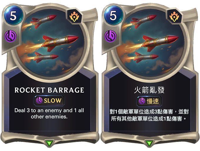 直接伤害是皮祖的长处,虽然在针对单一目标时确实是如此,该地区的AoE法术就不太能做到这点。「火箭齐射」应该能让玩家在想要让牌组能够应付小单位快攻牌时,将皮祖纳入考量。