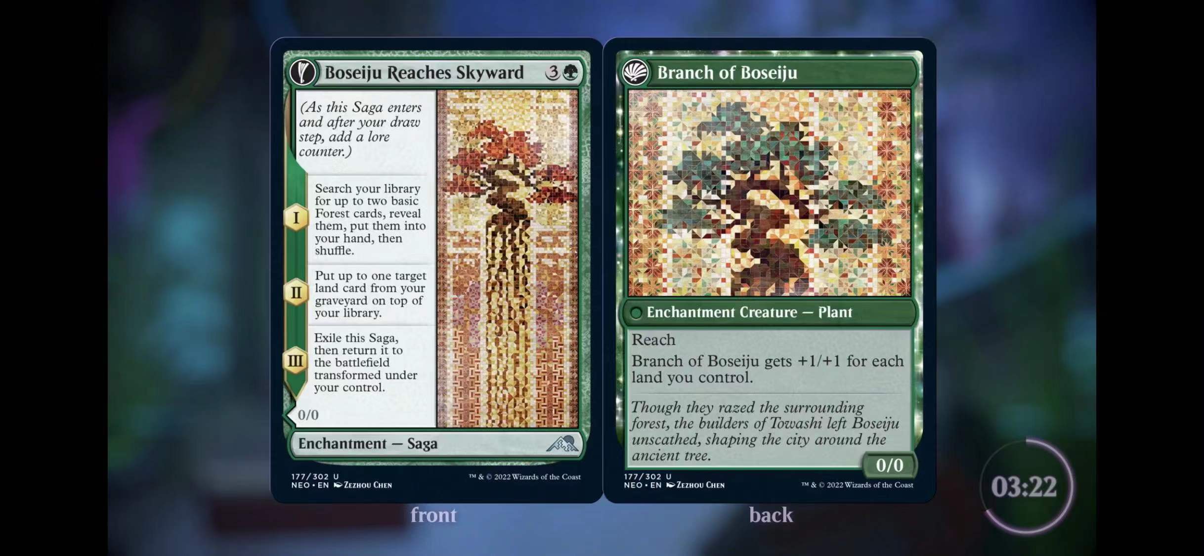 1、找两个基本树林进手;2、将目标地从坟场放到牌库顶;3、变0/0,你操控一个地就+1/+1