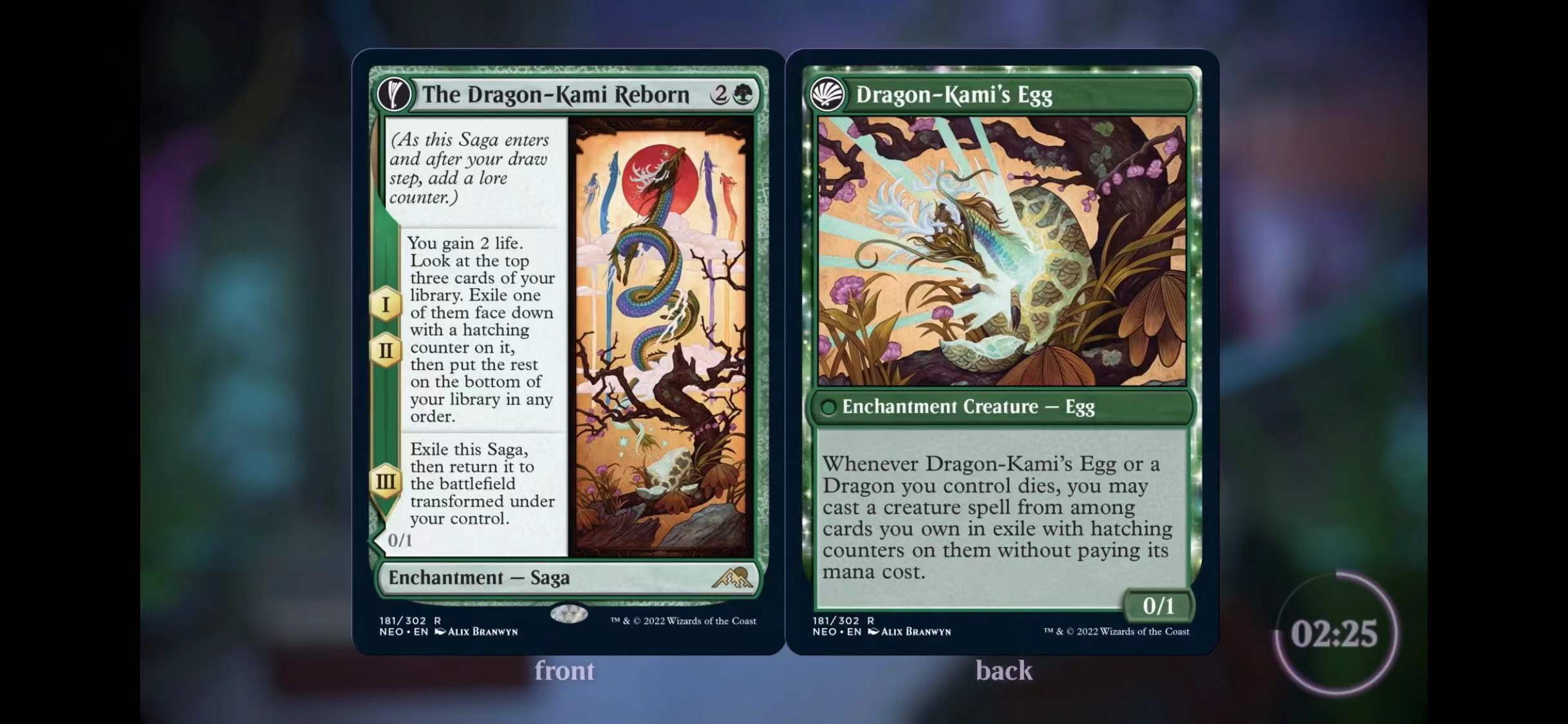 1、2、你获得两点生命,看牌库顶3张牌,将其中一张面朝下放逐,带一个**指示物,其他放回牌库底;3、变0/1,每当~或一个你操控的龙死去时,你可以免费施放一个放逐区你拥有的带**指示物的生物牌。