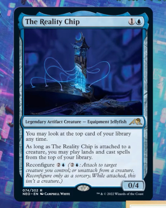 只要~装配于生物,你便可以从牌库顶使用地和施放咒语。