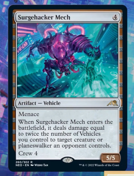 威慑,当~进场时,~对目标由对手操控的生物或鹏洛客造成由你操控之载具数量两倍的伤害.