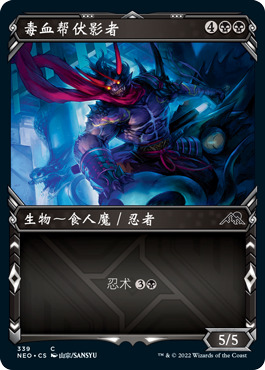 最先出现在原本神河三部曲中的忍术异能为战斗带来了些许未知元素。每个未受阻挡的生物都可能是忍者伪装!忍术是见于少数生物上的起动式异能,例如毒血帮伏影者便具有此异能。