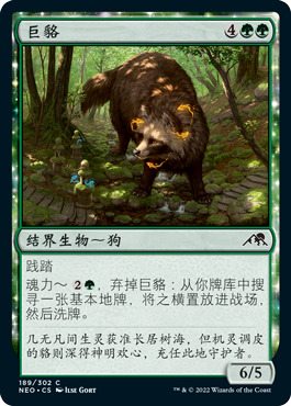 虽然巨大的6/5践踏狗在游戏后期能让你如虎添翼,但如果你只有三个地的话,这时候抓到它就比较尴尬了。在游戏早中段,巨貉能帮助你稳定扩张法术力基础,而你如果是在终盘阶段才抓到它,则它会很乐意帮你收拾残局。