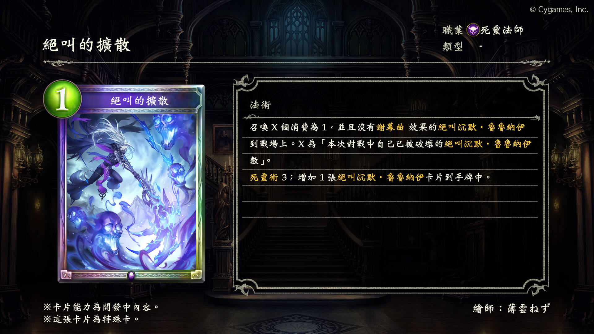 死灵术 3;增加1张绝叫沉默·鲁鲁纳伊到手牌中。