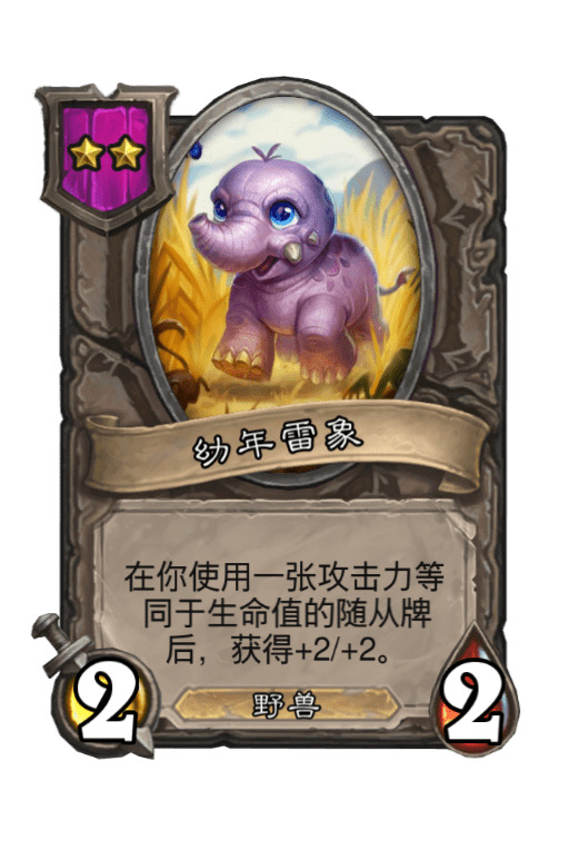 只有使用攻击力等于生命值的随从才可以触发幼年雷象