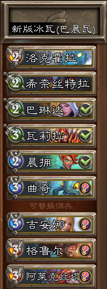 ②吼瓦萨 个人认为最难打的一套牌,小天敌,根本原因:萨尔吼爹瓦 克2绿一蓝拼连击速度的首发,很容易理解。因此在你确定对面是吼瓦萨(之前连续排到)或看到321(推断大概率吼瓦萨牛菠曲)情况下,可采用巴林达晨拥冰王首发,冰王装备决定了后手我们可以挽回一些劣势尽快消耗对方首发,巴林达水元素冰王同时在场也会让对面陷入萨尔锤谁的困境中,后备自不必说,有***以及曲奇瓦莉拉的非常规配合在,强度绝对优于大部分常见后备。
