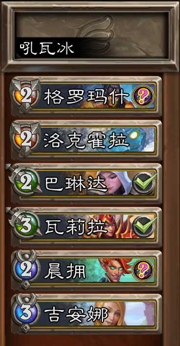 其他阵容:首发都是吼瓦巴林达。暗影剑冰剑圣,吼瓦塞冰塞林,开炮王冰弗丁防套盾,新的元素火焰队冰嘉顿,冰菠萝冰巫妖王……总之灵活运用水人,水人能冻两回合开局就是大优。